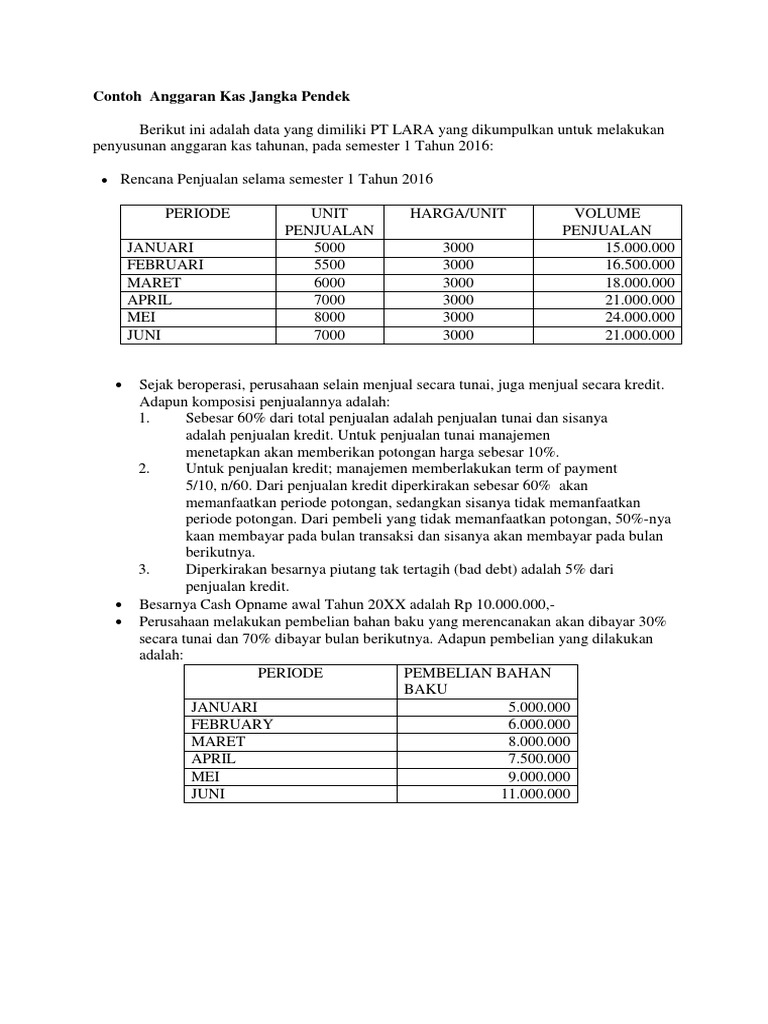 Contoh Anggaran Kas Jangka Pendek